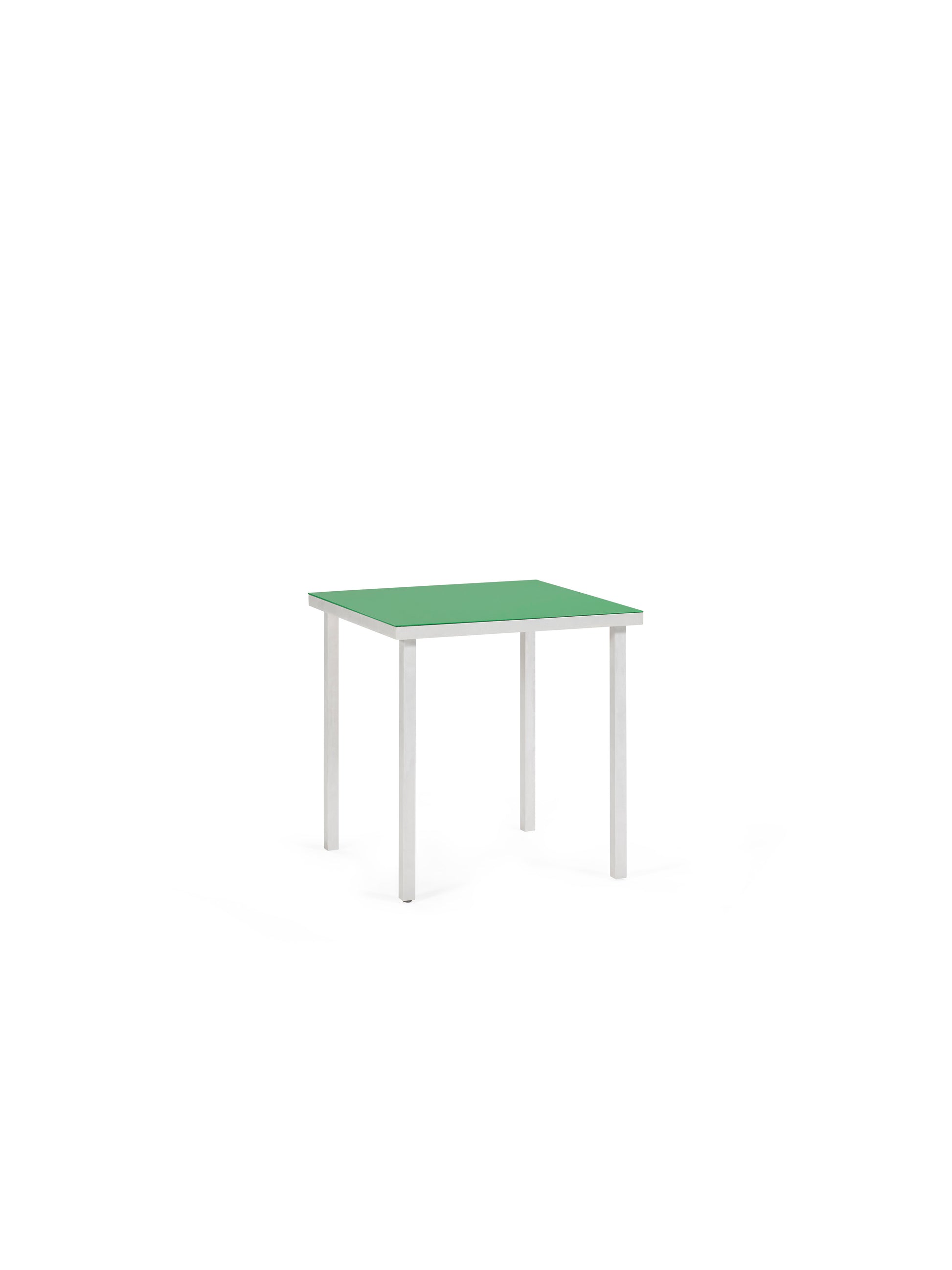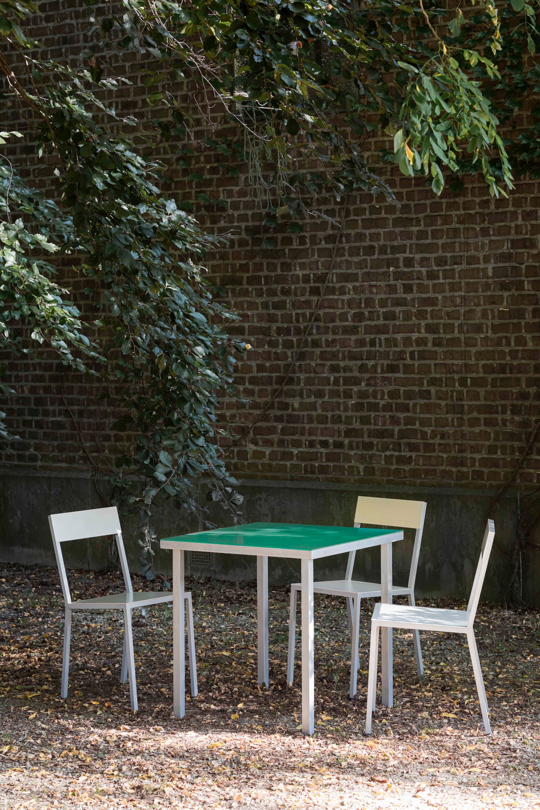 Alu dining table S comes in a vibrant green and soft ivory and will match perfectly with each of the alu chairs. The table can be used indoors and outdoors and due to its light weight it can be moved with ease.