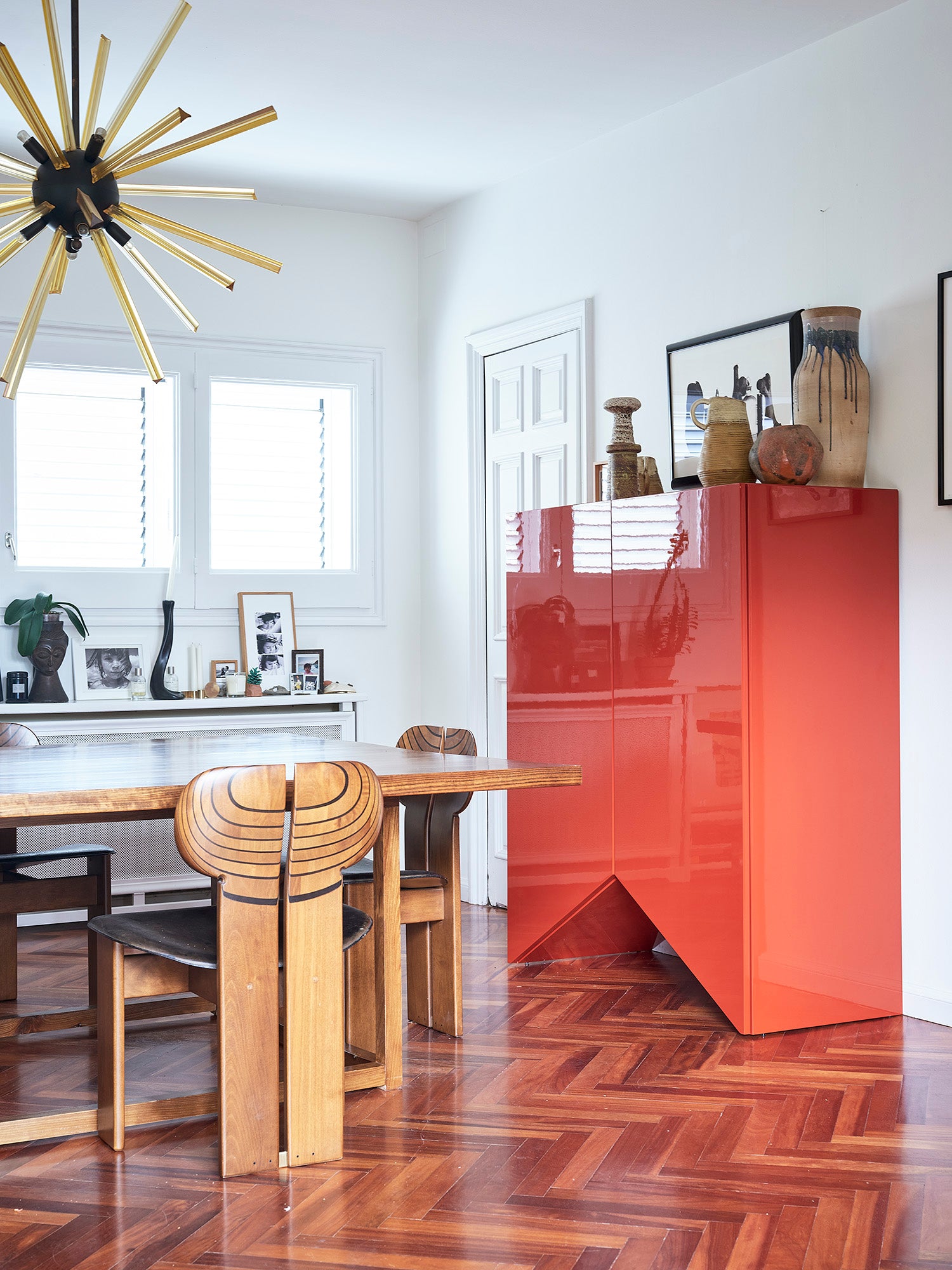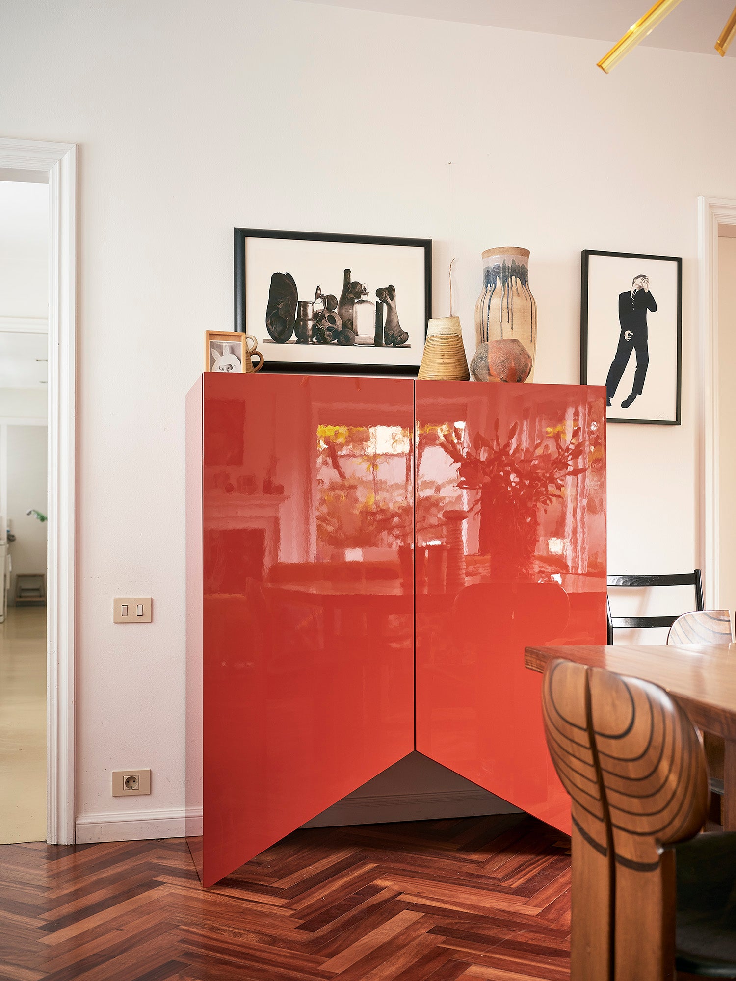 The striking silhouettes of the handmade cabinets feature each their unique cut-out base that transcend pure function. Refined colors and glossy finishes highlight their structure, allowing each piece to stand out with sculptural beauty. Whether displayed individually or as a group, the Bridges cabinets form a colorful architecture. Vibrant, spacious, and full of personality.
