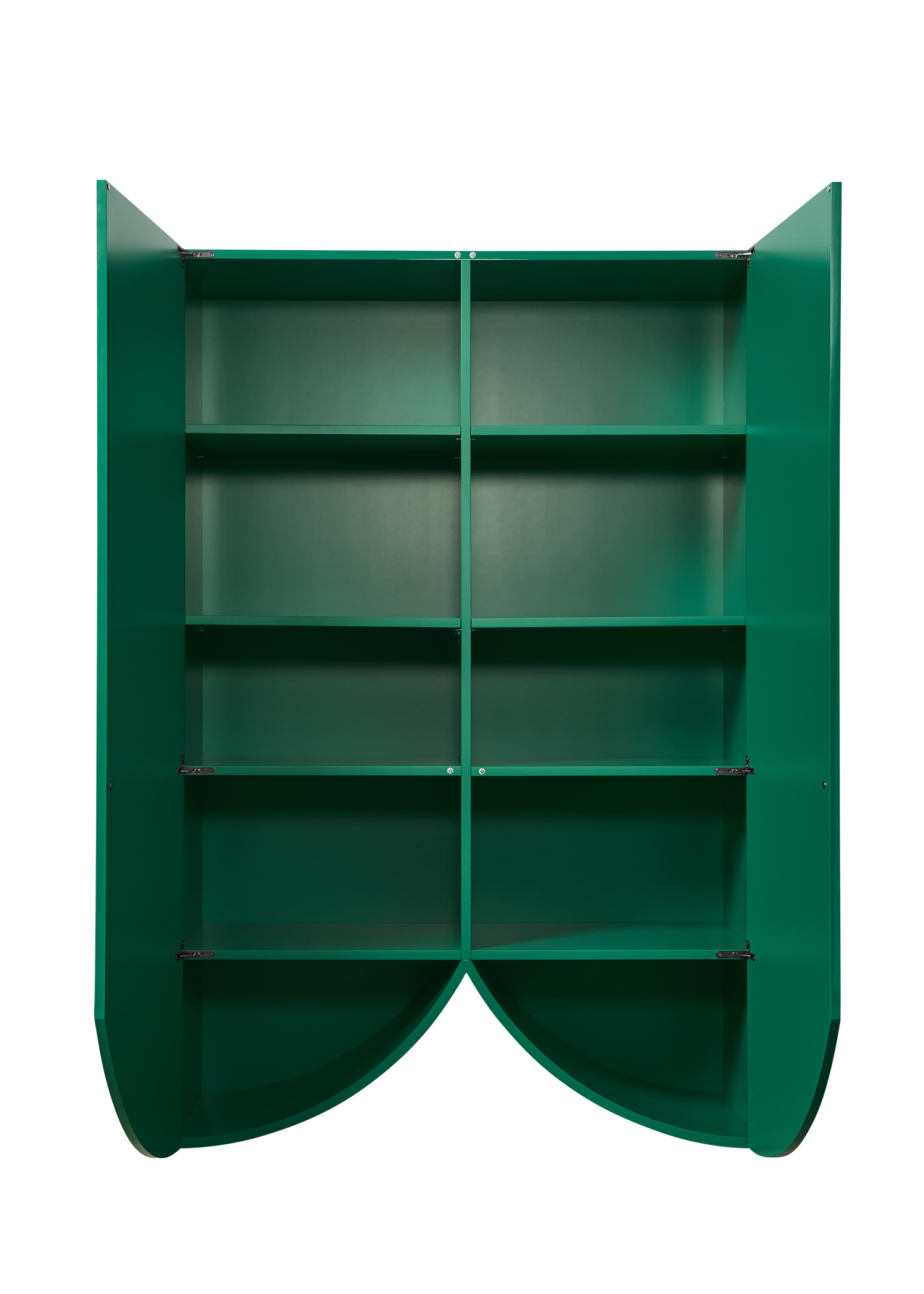 The striking silhouettes of the handmade cabinets feature each their unique cut-out base that transcend pure function. Refined colors and glossy finishes highlight their structure, allowing each piece to stand out with sculptural beauty. Whether displayed individually or as a group, the Bridges cabinets form a colorful architecture. Vibrant, spacious, and full of personality.