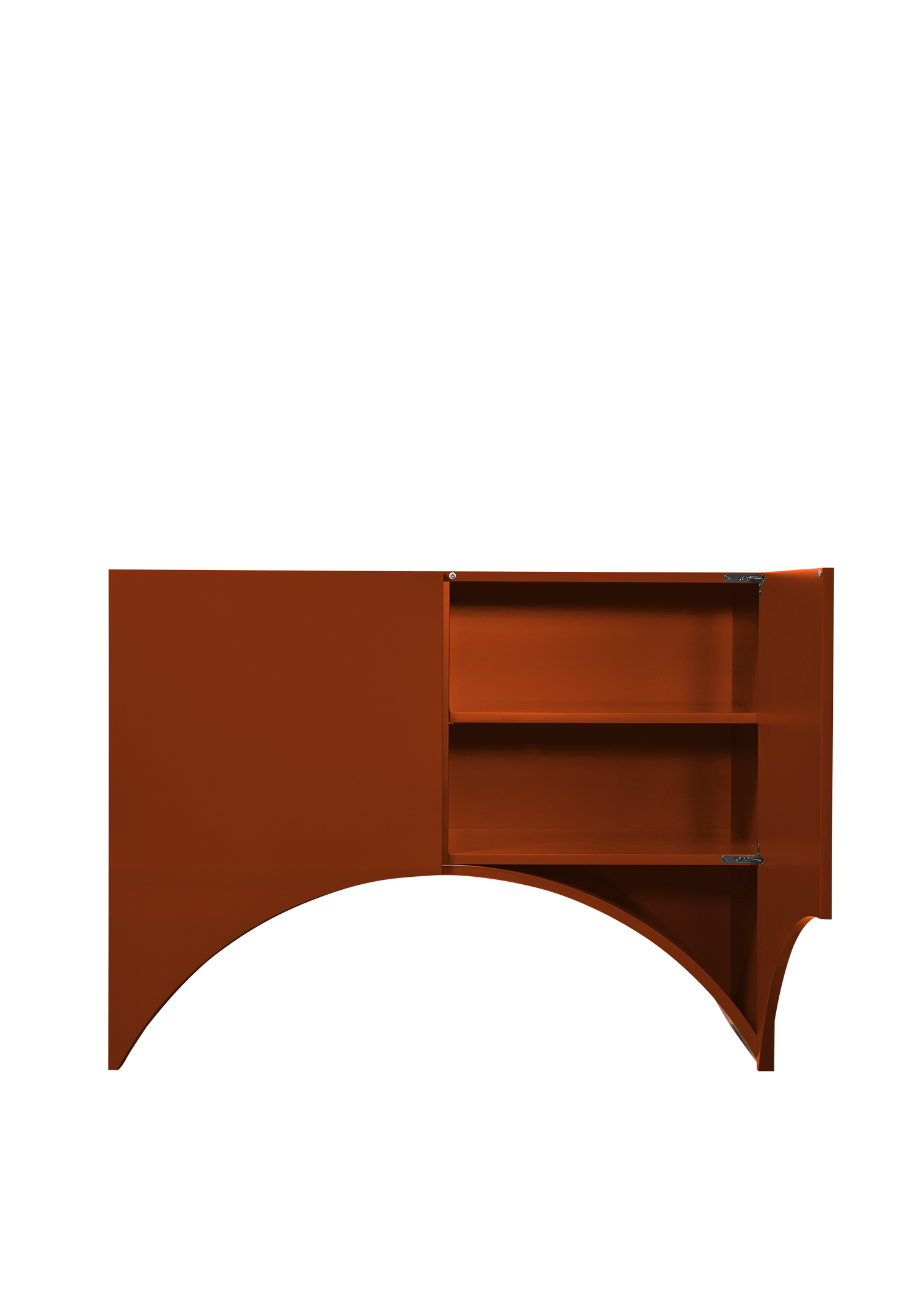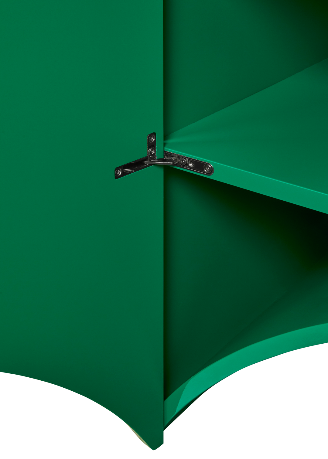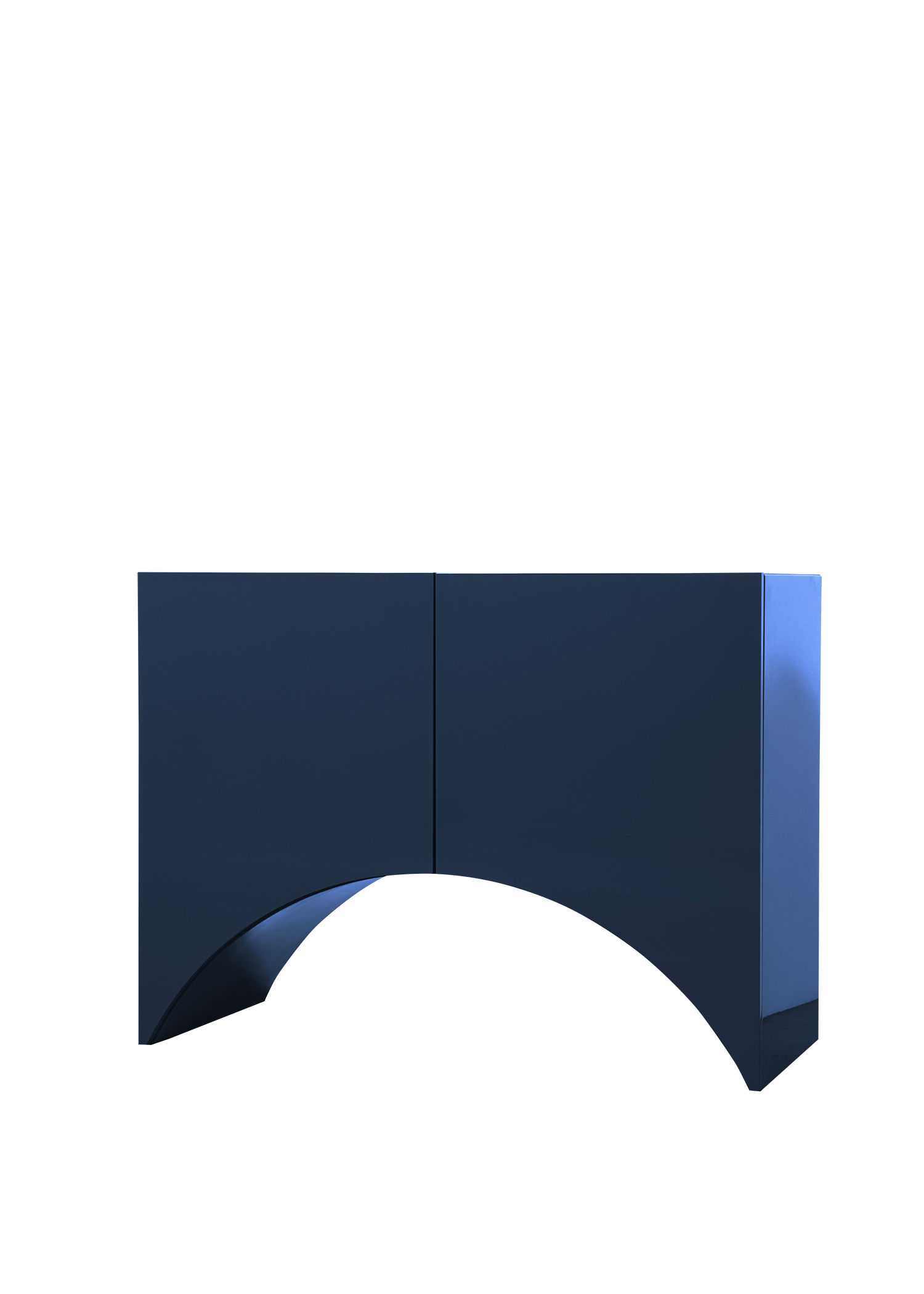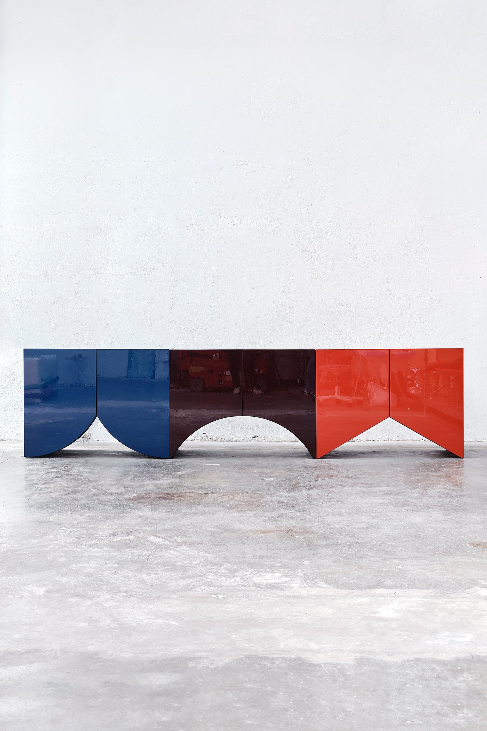 The striking silhouettes of the handmade cabinets feature each their unique cut-out base that transcend pure function. Refined colors and glossy finishes highlight their structure, allowing each piece to stand out with sculptural beauty. Whether displayed individually or as a group, the Bridges cabinets form a colorful architecture. Vibrant, spacious, and full of personality.