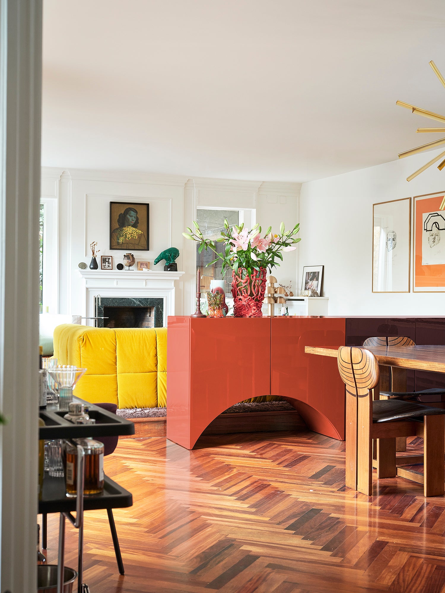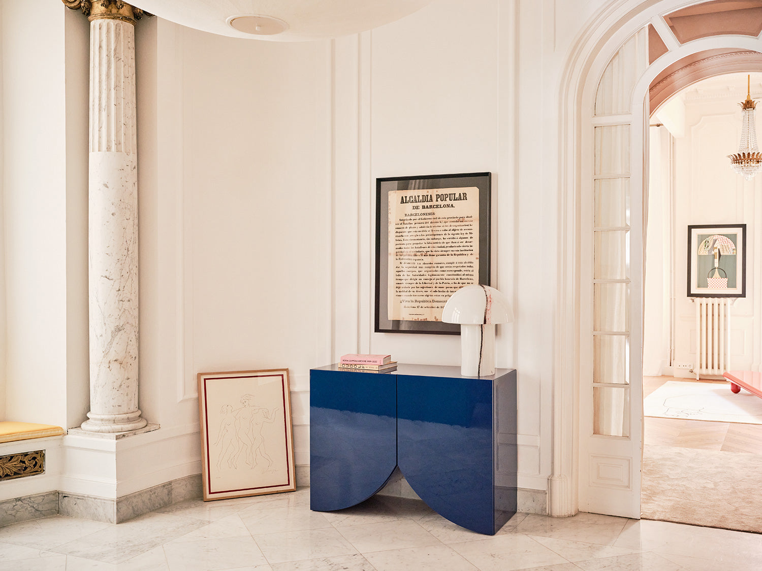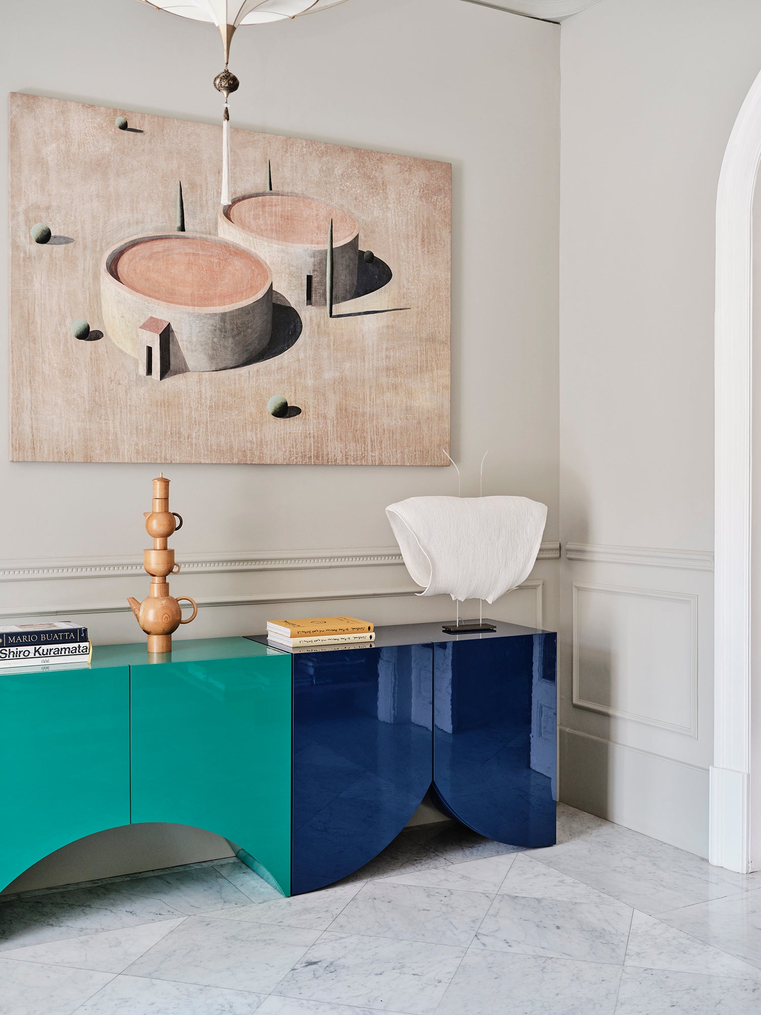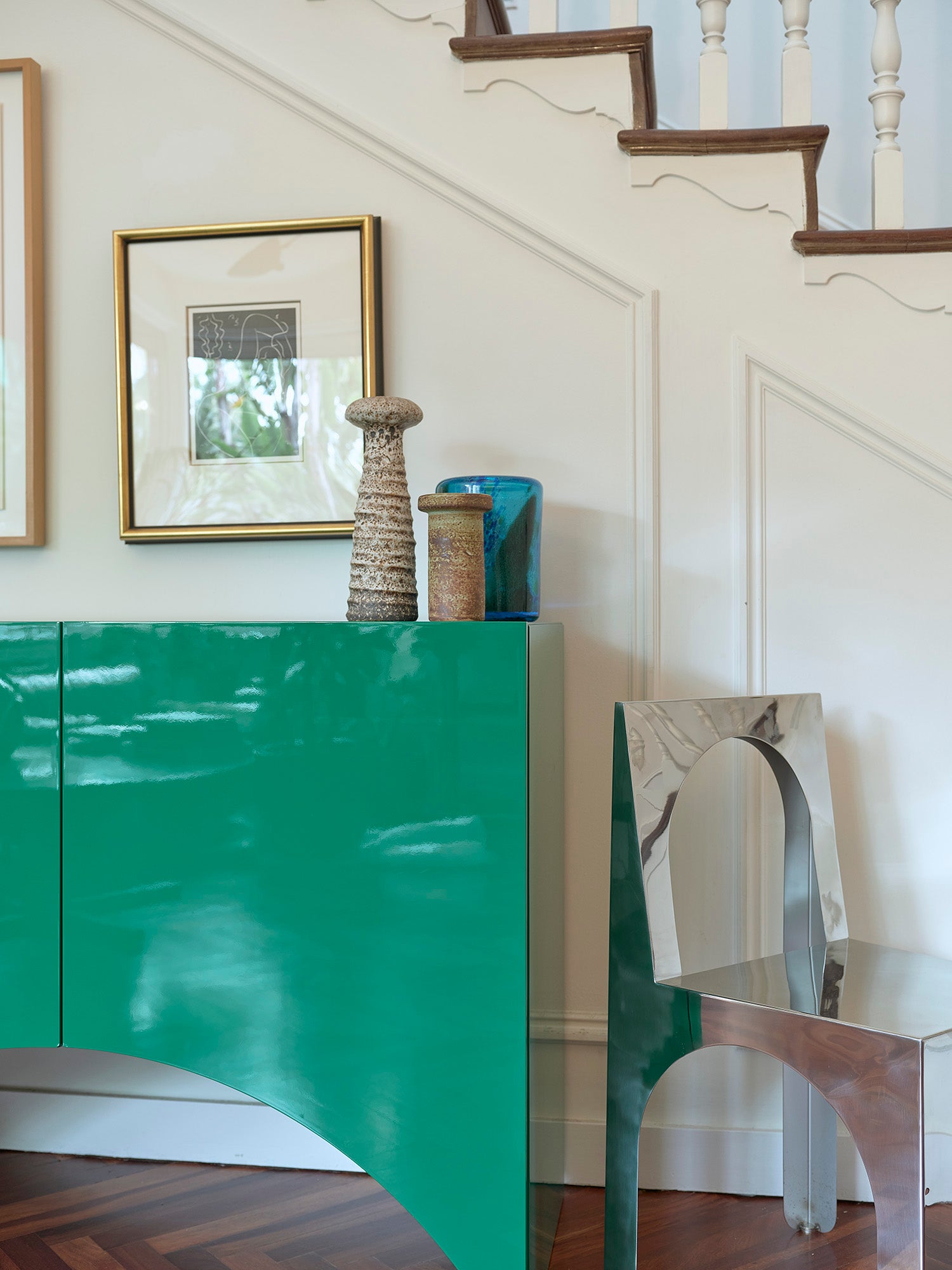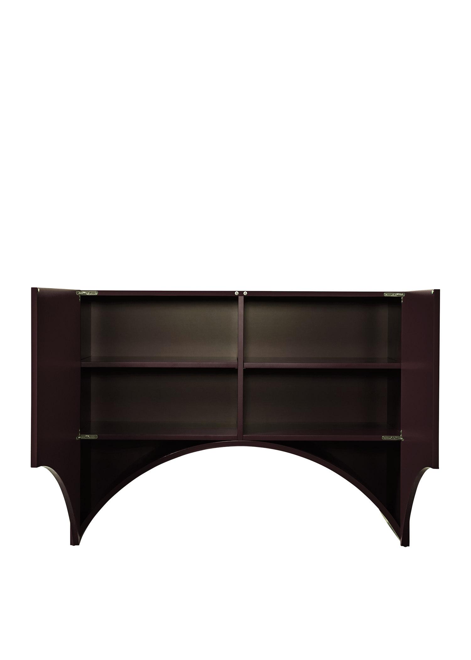 The striking silhouettes of the handmade cabinets feature each their unique cut-out base that transcend pure function. Refined colors and glossy finishes highlight their structure, allowing each piece to stand out with sculptural beauty. Whether displayed individually or as a group, the Bridges cabinets form a colorful architecture. Vibrant, spacious, and full of personality.