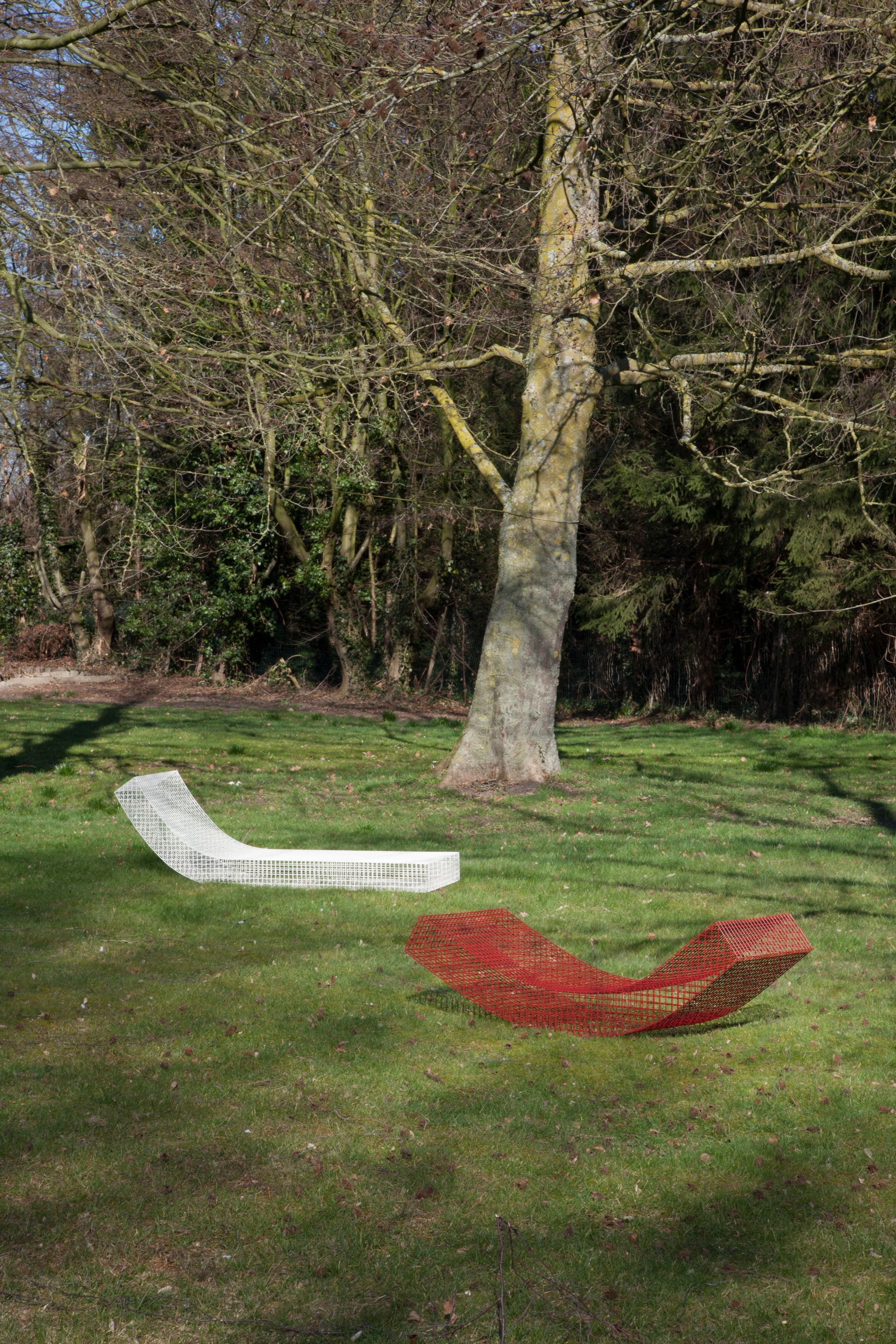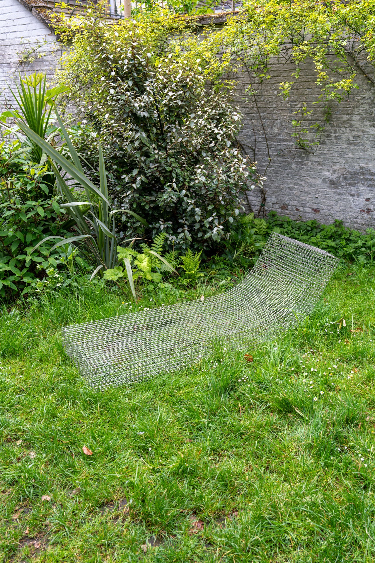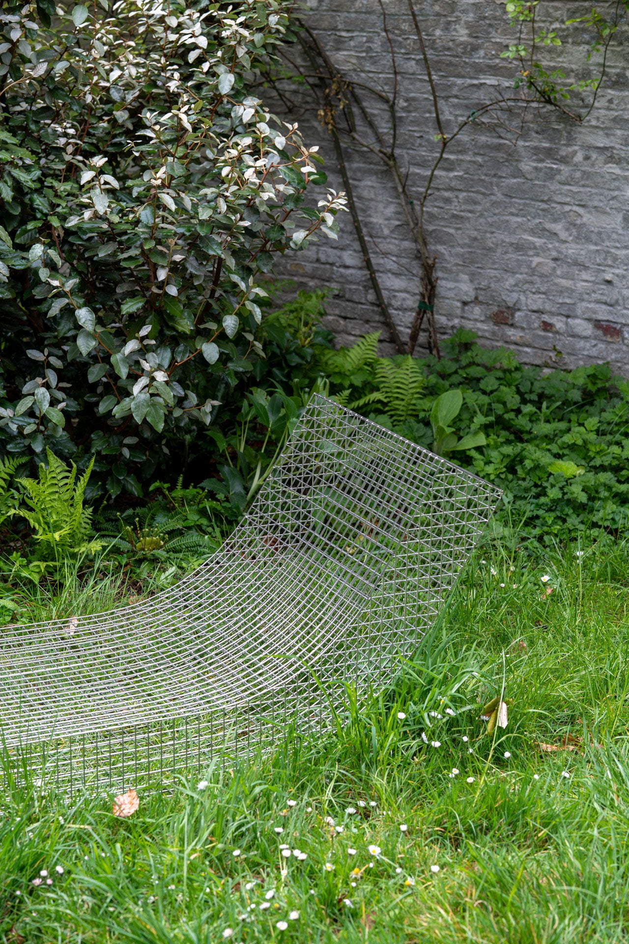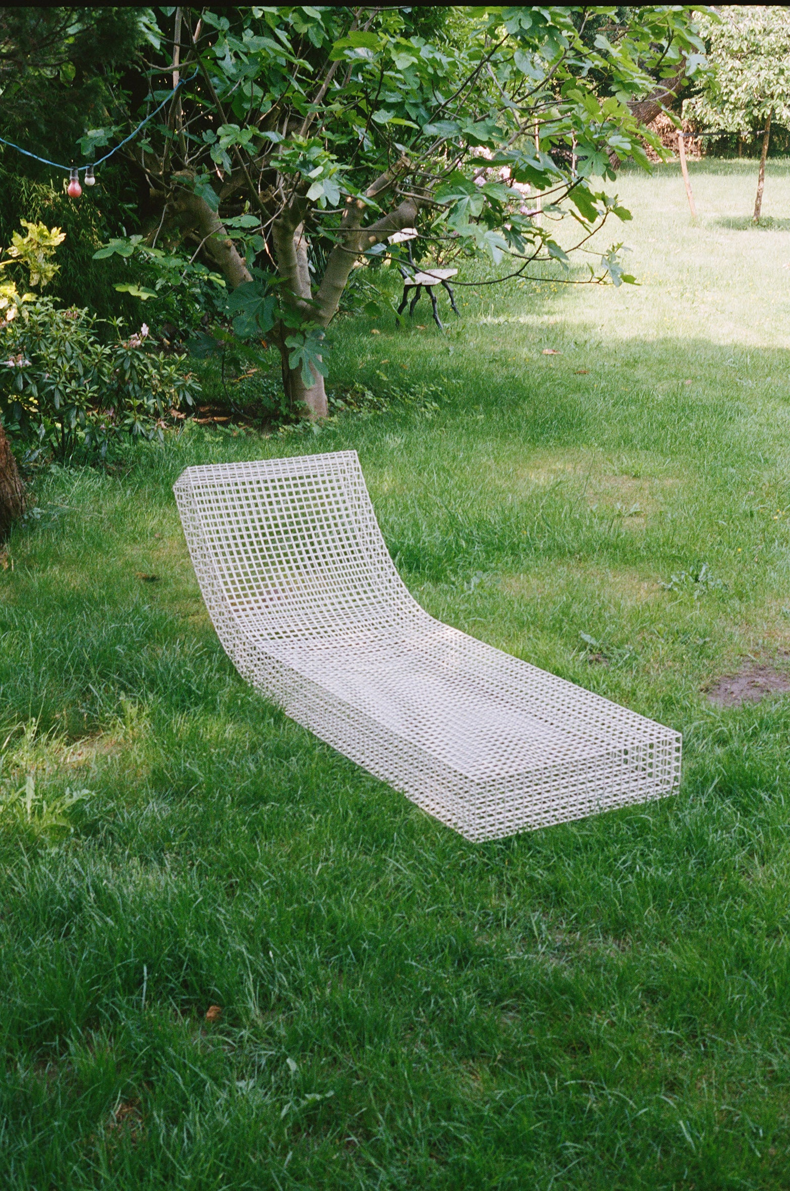 The sculptural seat, made of a lightweight grid in stainless steel, is looking like a mattress folded in different shapes. The Wire S is made to lounge in, either indoors or outdoors. It's available in stainless steel and powder stainless steel.